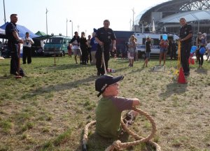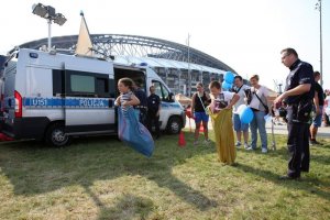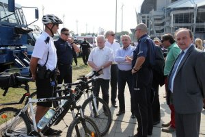 Wśród licznych stanowisk zorganizowanych dla odwiedzających można było spotkać spacerującego mł. insp Romana Kustera Komendanta Miejskiego Policji w Poznaniu, któremu towarzyszył mł. insp. Maciej Nestoruk Zastępca Komendanta Miejskiego Policji w Poznaniu. Obaj panowie jako gospodarze imprezy dbali, by wszyscy, którzy zjawili się na festynie byli zadowoleni i dobrze się bawili.