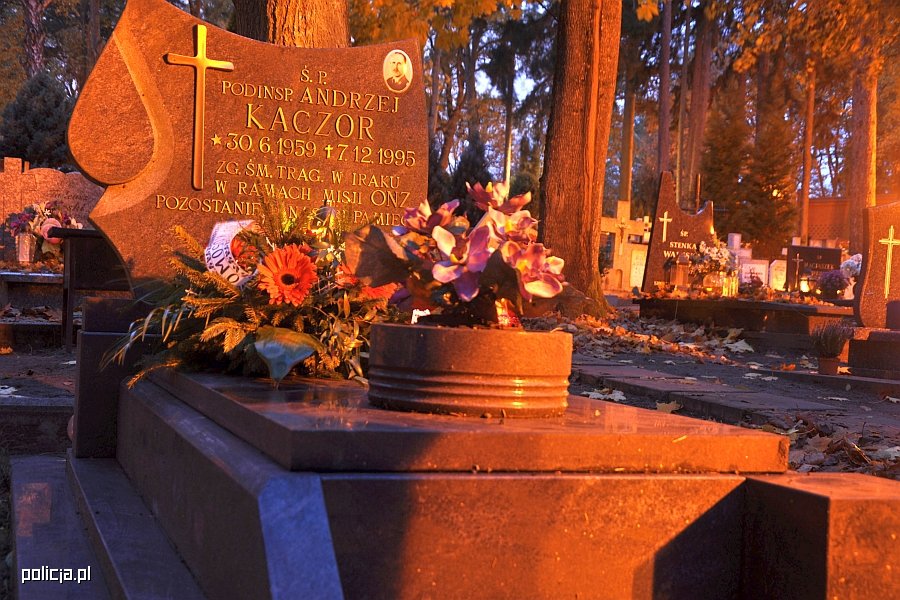 Podinsp. Andrzej Kaczor jako wysokiej klasy oficer i specjalista, we wrześniu 1995 roku został delegowany do kontyngentu straży ONZ w Iraku, gdzie w czasie wykonywania służby w patrolu zginął tragicznie w dniu 7 grudnia 1995 roku.