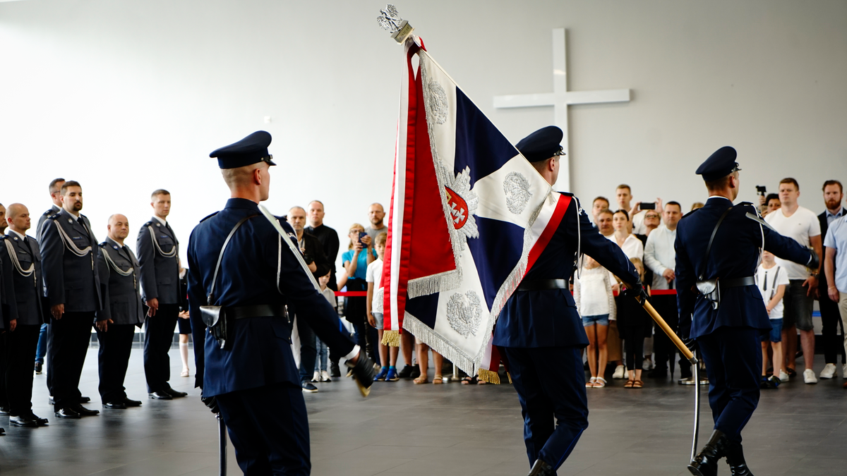 „Ja, obywatel Rzeczypospolitej Polskiej, świadom podejmowanych obowiązków policjanta, ślubuję: służyć wiernie Narodowi, chronić ustanowiony Konstytucją Rzeczypospolitej Polskiej porządek prawny, strzec bezpieczeństwa Państwa i jego obywateli, nawet z narażeniem życia. Wykonując powierzone mi zadania, ślubuję pilnie przestrzegać prawa, dochować wierności konstytucyjnym organom Rzeczypospolitej Polskiej, przestrzegać dyscypliny służbowej oraz wykonywać rozkazy i polecenia przełożonych. Ślubuję strzec tajemnic związanych ze służbą, honoru, godności i dobrego imienia służby oraz przestrzegać zasad etyki zawodowej" – przysięgało 22 nowo przyjętych funkcjonariuszy.
