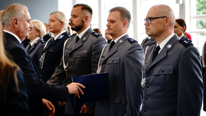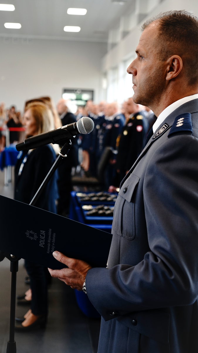 Na ceremonii obecny był Wojewoda Pomorski p. Dariusz Drelich, który razem z Komendantem Wojewódzkim Policji w Gdańsku wręczyli funkcjonariuszom legitymacje służbowe oraz listy gratulacyjne.