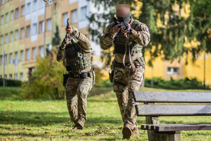 Policjanci doskonalili także współdziałanie podczas poruszania się w terenie zurbanizowanym, w którym występuje zagrożenie bezpośrednim ostrzałem. Program ćwiczeń zgrywających zawierał również doskonalenie taktyki zatrzymywania i konwojowania osób.