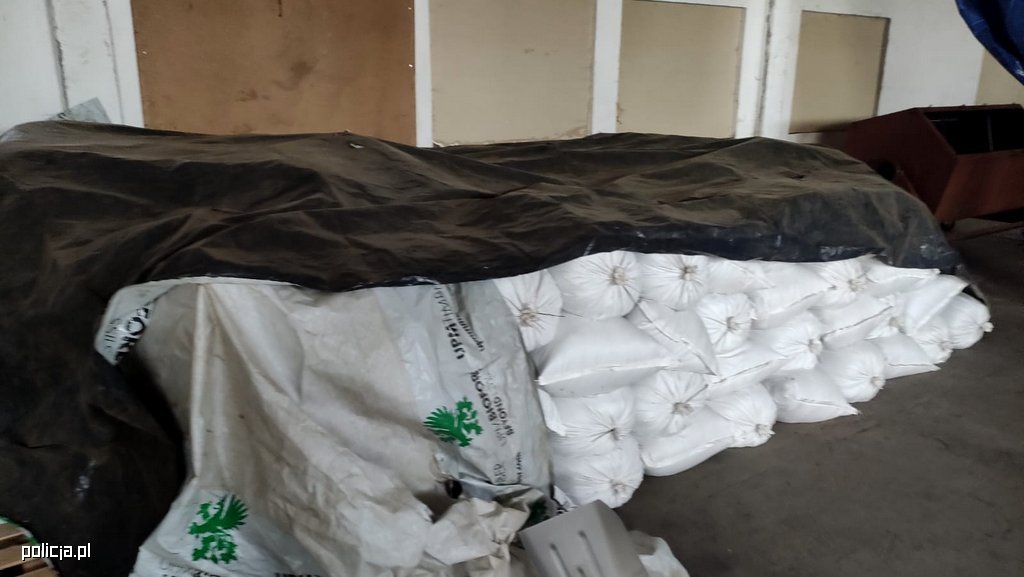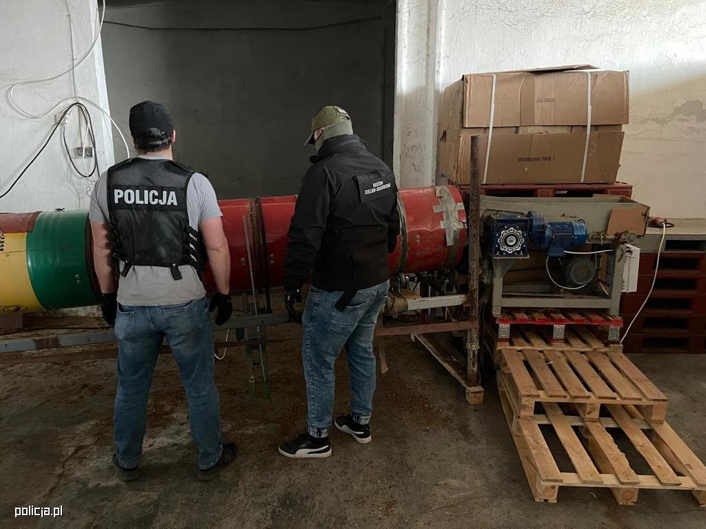 To był dopiero początek. Następnie mundurowi z Bydgoszczy, wspólnie z funkcjonariuszami KAS, skierowali się do ustalonej hali magazynowej. Po wejściu do środka ujawnili 198 worków tytoniu o wadze niemal 3 ton. Natomiast w dalszej części pomieszczenia poustawiane liczne kartony z suszem tytoniowym w postaci liści w ilości ponad 10 ton. Znajdowały się tam również urządzenia i przedmioty służące do przetwarzania suszu tytoniowego w gotowy do palenia tytoń, między innymi gilotyna, waga, puste worki polipropylenowe, wózek paletowy oraz pojemniki plastikowe z suszem.