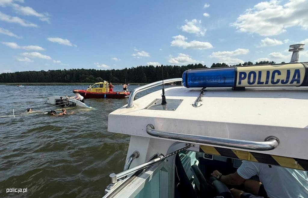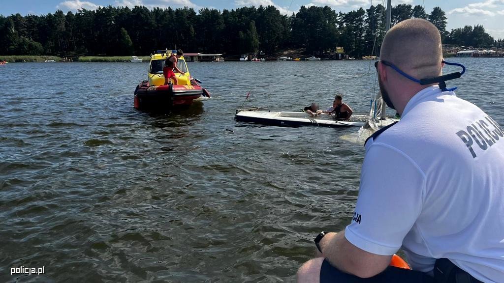 Gdy policjanci upewnili się, że tym żeglarzom już nic nie grozi ruszyli na pomoc innym. Zauważyli bowiem wywróconą łódź, a wokół niej pływających trzech mężczyzn. Ratownicy WOPR z Pieczysk, którzy dołączyli do policjantów wyciągnęli z wody załogę, a mundurowi zabezpieczyli łódź, aby ta nie zatonęła. Po czym wypompowali wodę i odholowali żaglówkę do przystani w Pieczyskach. Na szczęście nikt w tym zdarzeniu nie ucierpiał.