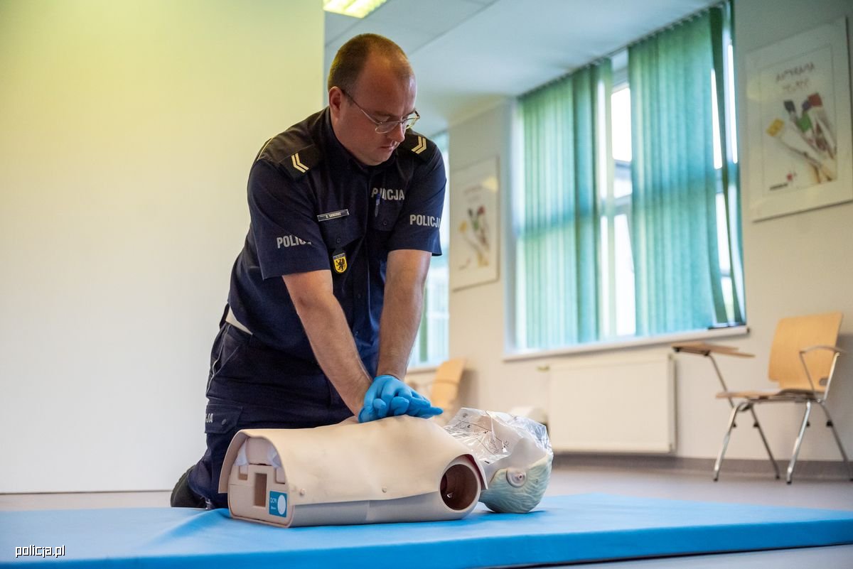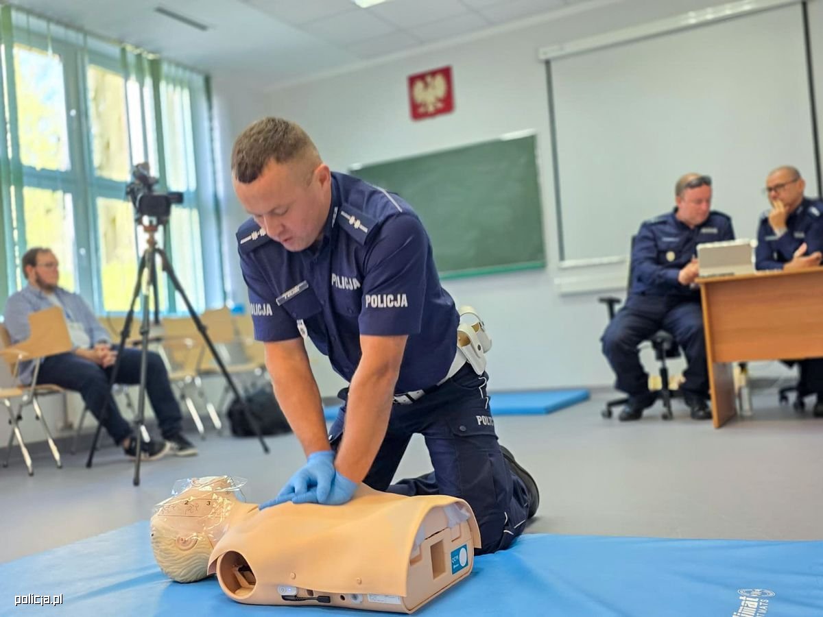 Czwartkowe zmagania rozpoczęły się w murach Szkoły Policji w Katowicach. To właśnie tam uczestnicy konkursu musieli wykazać się wiedzą i praktycznymi umiejętnościami w zakresie udzielania pierwszej pomocy. Najpierw rozwiązali test jednokrotnego wyboru składający się z 22 pytań, a następnie przystąpili do części praktycznej. Ich zadanie polegało na prawidłowym rozpoznaniu stanu poszkodowanego, udrożnieniu dróg oddechowych, ocenie oddechu i przeprowadzeniu resuscytacji krążeniowo-oddechowej u osoby dorosłej.