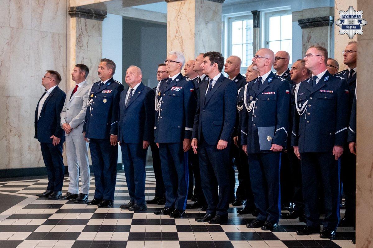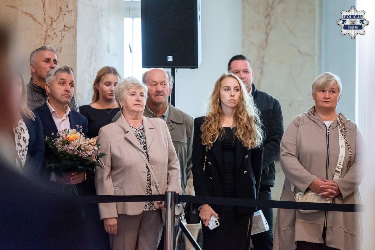 W uroczystości uczestniczyli m.in. nadinsp. Mariusz Krzystyniak - Komendant Wojewódzki Policji w Katowicach, Marek Wójcik - Wojewoda Śląski, płk. rez. Zbigniew Piątek Pełnomocnik Marszałka Województwa Śląskiego ds. Promocji Obronności i Wychowania Patriotycznego, insp. Zbigniew Chrząstek - Zastępca Komendanta Szkoły Policji w Katowicach, insp. Marek Kasztelan, Naczelnik Zarządu w Katowicach Centralnego Biura Śledczego Policji, mł. insp. Maciej Treliga, Naczelnik Wydziału Operacyjno-Śledczego Zarządu w Katowicach Centralnego Biura Zwalczania Cyberprzestępczości, a także komendanci miejscy i powiatowi Policji garnizonu śląskiego, dowódcy Oddziału i Samodzielnych Pododdziałów Prewencji Policji oraz przedstawiciele związków zawodowych policjantów.