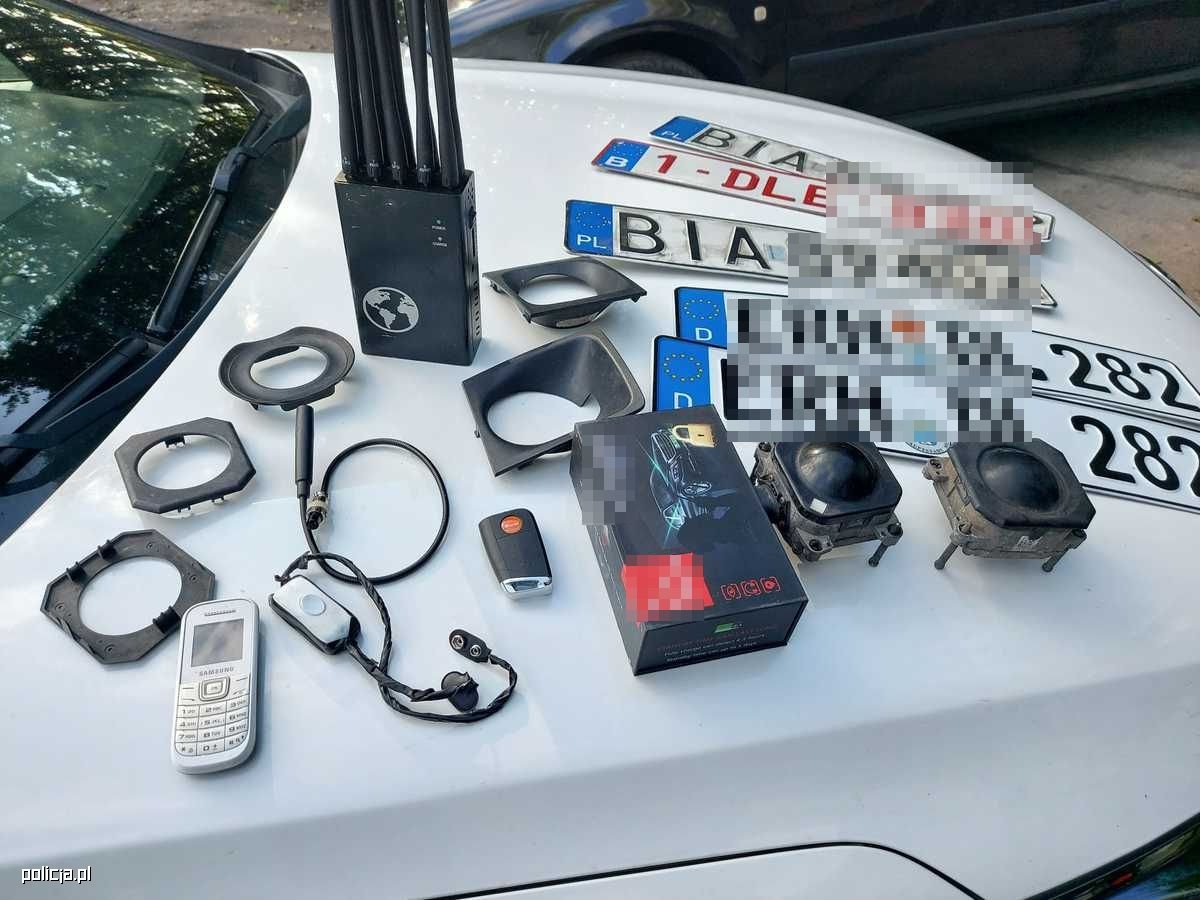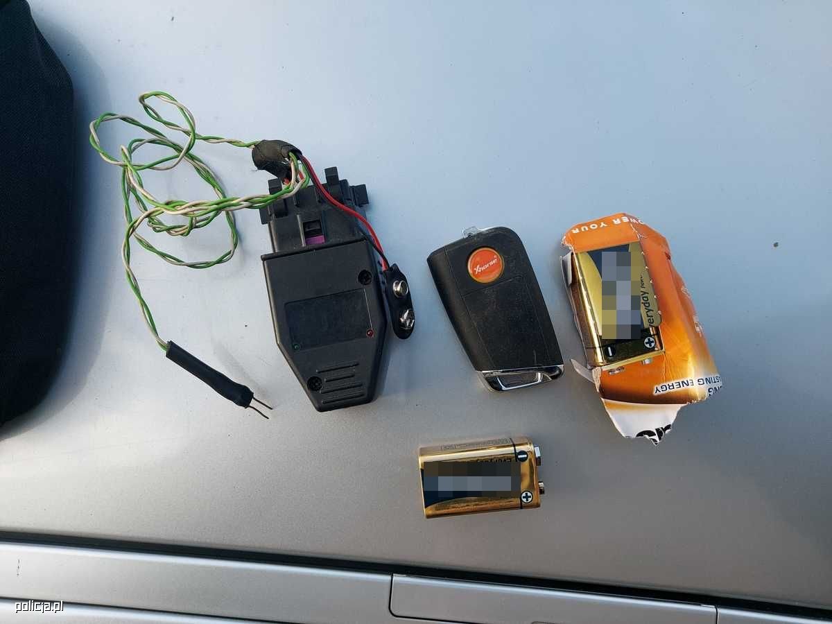 Policjanci w dogodnym dla siebie momencie zatrzymali całą trójkę. Przy zatrzymanych zabezpieczono telefony komórkowe, narzędzia ułatwiające włamania do pojazdów takie jak różnego rodzaju kluczyki, urządzenie z wejściem OBD, zagłuszarkę gps-u oraz różne tablice rejestracyjne. Dla utrudnienia identyfikacji na skradzionym Jeepie również były założone tablice rejestracyjne od pojazdu innej marki. Odzyskany pojazd został poddany szczegółowym oględzinom przez technika kryminalistyki. Właściciel skradzionego auta o tym, że utracił swój pojazd dowiedział się od policjantów.