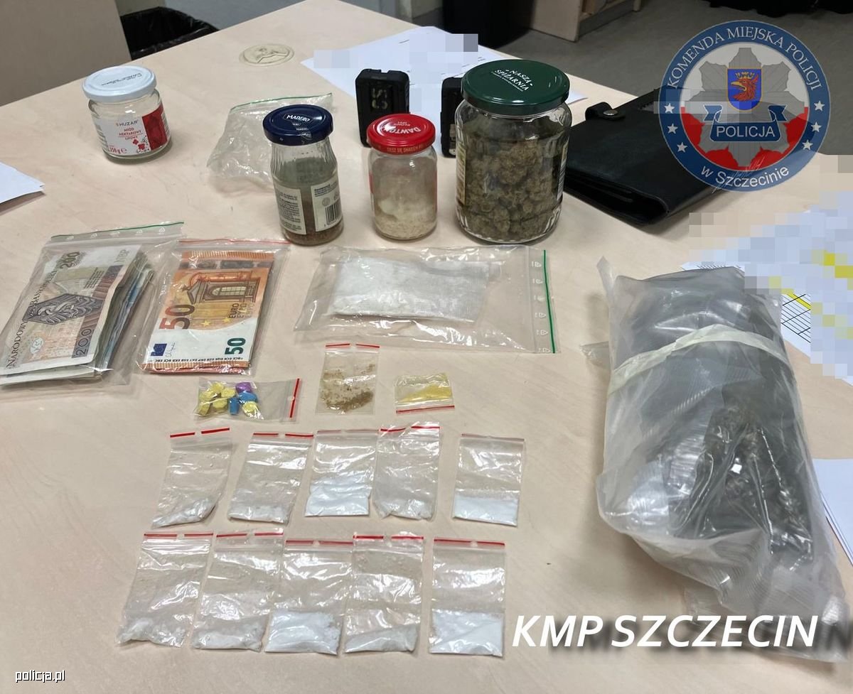 Dodatkowo, w lodówce oraz w szafce pod zlewem policjanci znaleźli środki odurzające i substancje psychotropowe o łącznej wadze ponad 230 gramów. Zabezpieczono również wagi jubilerskie oraz telefony komórkowe mogące mieć związek z przestępczym procederem.