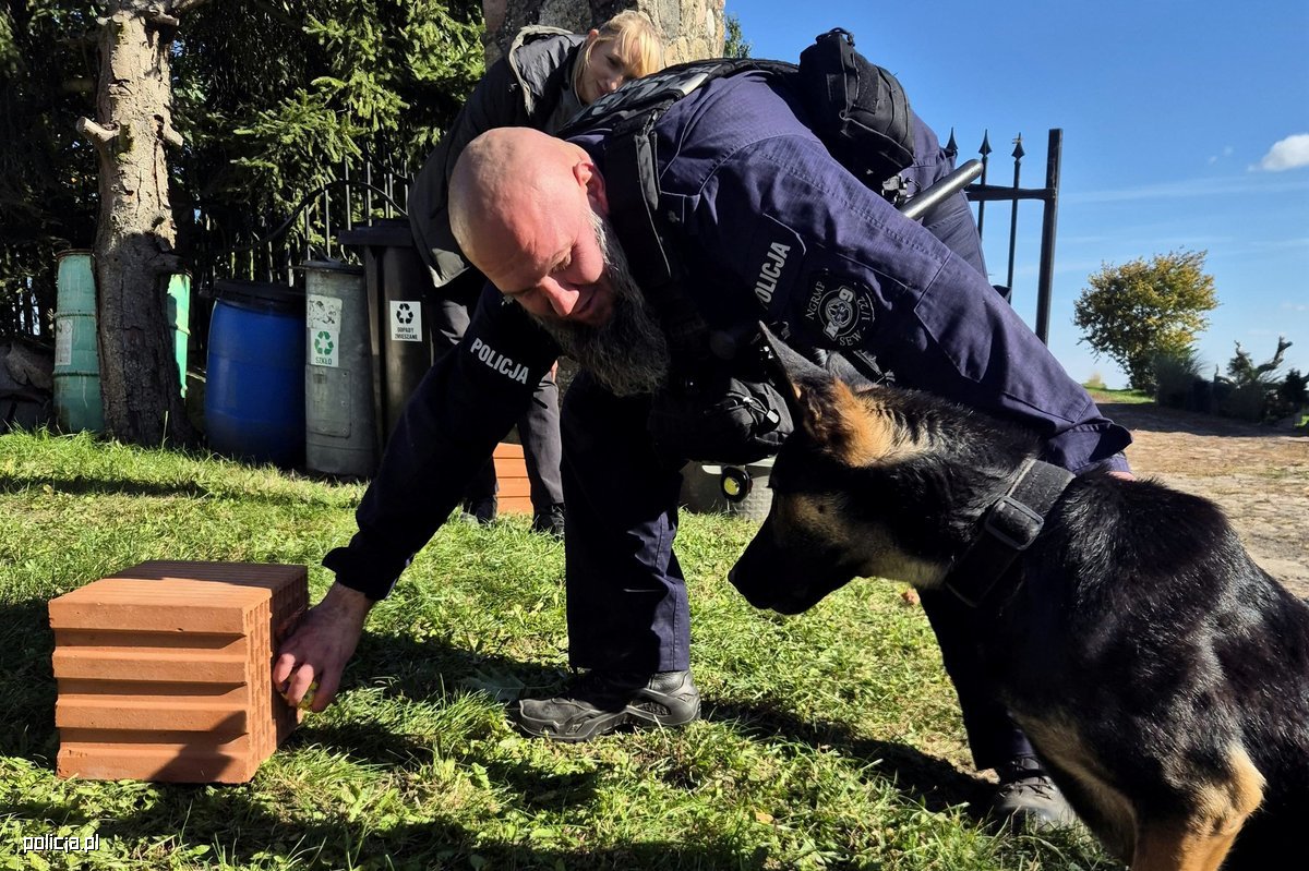 W czwartek, 02.10.2025 r., w siedzibie Ochotniczej Straży Pożarnej w Gościeradzu, w powiecie bydgoskim, odbyło się szkolenie dla psów służbowych, ukierunkowane na doskonalenie umiejętności w zakresie wyszukiwania zapachu materiałów wybuchowych. Uczestniczyło w nim sześciu policyjnych przewodników z garnizonu kujawsko-pomorskiego, wśród których znalazł się policjant z Samodzielnego Pododdziału Kontrterrorystycznego Policji w Bydgoszczy wraz ze swoją podopieczną Deltą. To dwuletni owczarek holenderski służący od października ubiegłego roku w Sekcji Minersko-Pirotechnicznej SPKP w Bydgoszczy. Do zadań Delty należy m.in.: wykrywanie materiałów wybuchowych, sprawdzanie dróg dojścia i stref działań - identyfikacja potencjalnych zagrożeń przed wejściem operatorów do budynków lub pojazdów.