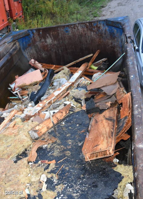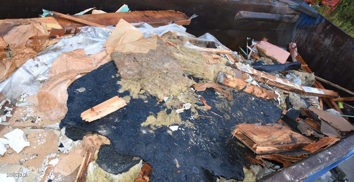 Funkcjonariusze udali się pod wskazany adres, gdzie zauważyli samochód ciężarowy, którego kierowca właśnie wysypywał odpady do dawnego wyrobiska po piachu. Na miejscu pracowała również koparka. Jak ustalili funkcjonariusze, wśród odpadów znajdowały się m.in. lepik, papa oraz wełna mineralna – substancje uznawane za niebezpieczne dla środowiska.