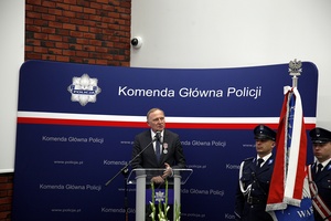 Następnie przyszedł czas na oficjalne wystąpienia gości. Jako pierwszy głos zabrał Sekretarz Stanu w MSWiA Wiesław Szczepański, który podziękował pracownikom Policji za codzienną pracę, zauważając, że jest ona czasami niedoceniana. Chciałem powiedzieć, że robimy wszystko, aby tę sytuację poprawić. (…) Szukamy innych rozwiązań. Ta rzecz, która dla nas jest najważniejsza i dla funkcjonariuszy to świadczenie mieszkaniowe. Bardzo liczymy na to, że Państwo pomożecie nam to zrealizować, ale chciałem powiedzieć jedną rzecz, ustaliliśmy z Panem Ministrem i Komendantem Głównym, że godziwie zapłacimy za tę pracę. (…) Mam też taką małą nutkę nadziei, (…) że w przyszłym roku ta nadzieja jakoś się rozwiąże i będziemy wspólnie chcieli pomóc Państwu w rozwiązaniu tej trudnej sytuacji, bo zdajemy sobie sprawę, że dzisiaj chcemy Państwu pomóc. (…) A żeby nie było tak smutno, przede wszystkim dziękuję za Waszą pracę, dziękuję za to, że w cieniu funkcjonariuszy pracujecie na to, żeby Policja na co dzień mogła dbać o bezpieczeństwo Polaków. Macie w nas orędowników, we mnie też i będziemy robić wszystko z Panem Ministrem, aby w roku 2026 poprawić Państwa sytuację, aby ona była lepsza. Czasami nawet nie pieniądza, a dyplom, czy odznaczenie, które jest formą podziękowania, też są elementem pewnej gratyfikacji. Życzymy Państwu dalszych 25 lat. Życzę spełnienia marzeń, choć Pani przewodnicząca wie, że większość marzeń kosztuje. Mam nadzieję, że te, które są kosztownym marzeniem będzie możliwe do spełnienia w roku 2026. Wszystkiego najlepszego od całego kierownictwa MSWiA.