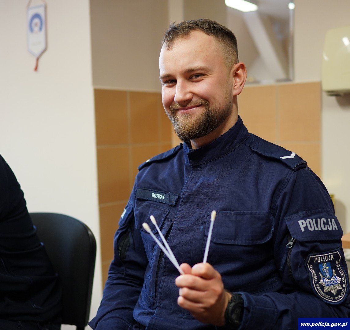 W Oddziale Prewencji Policji w Olsztynie odbyła się niezwykle ważna akcja pobierania wymazów przez wolontariuszy z Fundacji DKMS. Wydarzenie to miało na celu rejestrację potencjalnych dawców szpiku, by dać szansę na pomoc chorym na nowotwory układu krwionośnego. Rejestrując się, zwiększasz szansę na uratowanie komuś życia.