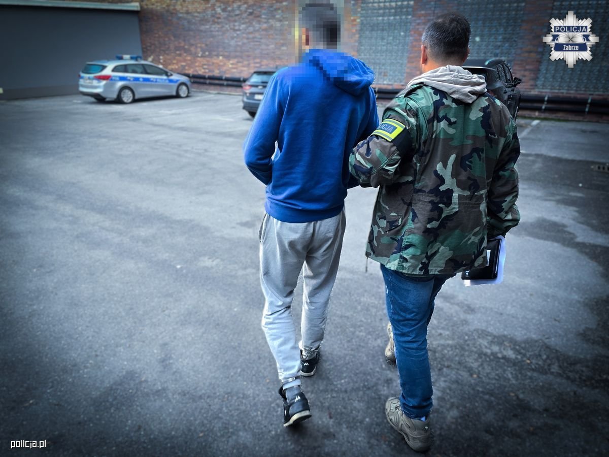 Po kilkunastu godzinach od zdarzenia został namierzony przez policjantów z Zespołu Poszukiwań Celowych Wydziału Poszukiwań i Identyfikacji Osób KWP w Katowicach i zabrzańskich stróżów prawa w jednym z mieszkań na terenie Zabrza. Chcąc uniknąć zatrzymania, 31-latek ukrył się przed policjantami w wersalce. To jednak nie uchroniło go przed konsekwencjami jego czynów. Był bowiem poszukiwany dwoma listami gończymi wydanymi przez Sąd Okręgowy w Gliwicach oraz Sąd Rejonowy w Zabrzu. Gliwicki sąd skazał go na 3 lata pozbawienia wolności za udział w zorganizowanej grupie przestępczej i wprowadzenie do obrotu znacznej ilości narkotyków, natomiast zabrzański sąd wydał list gończy w związku z karą 4 lat więzienia za spowodowanie średniego uszczerbku na zdrowiu.