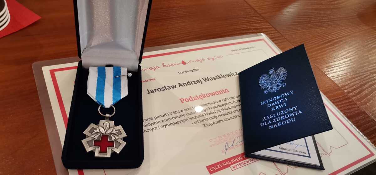 Asp. Jarosław Waszkiewicz – policjant dzielnicowy w swoim życiu oddał już prawie 22 litry krwi. Jest honorowym dawcą od 2002 roku. W tym czasie został już odznaczony odznakami „Zasłużony Honorowy Dawca Krwi I i II stopnia”.