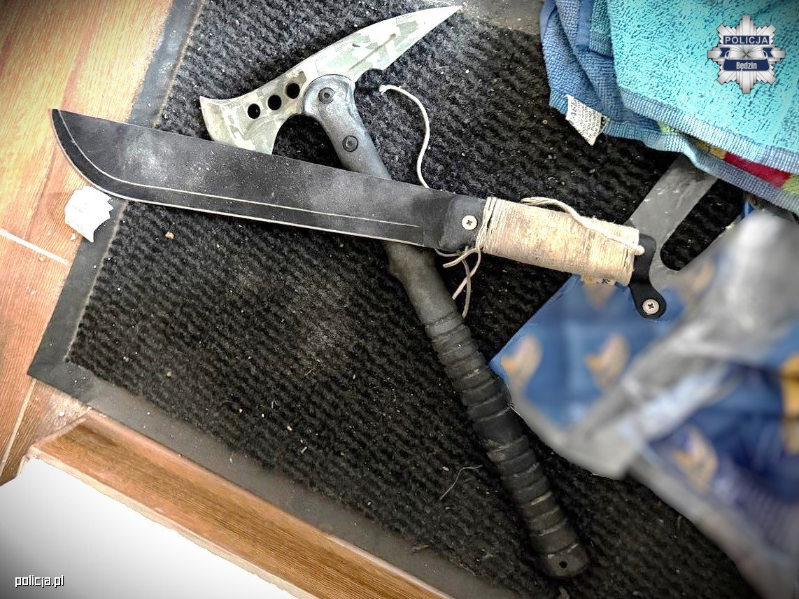 Na miejscu mundurowi zastali zgłaszającą, która wskazała konkretne mieszkanie, twierdząc, że jego lokator strzelał z broni pneumatycznej. Policjanci natychmiast udali się pod wskazany adres. Po zapukaniu do drzwi usłyszeli ruch za wizjerem, jednak nikt nie otwierał. Dopiero na ponowne, głośne wezwanie do otwarcia drzwi, te otworzyły się szeroko, a z mieszkania bez słowa wyszedł mężczyzna ubrany w kaptur, trzymając w dłoni około 40-centymetrową maczetę.