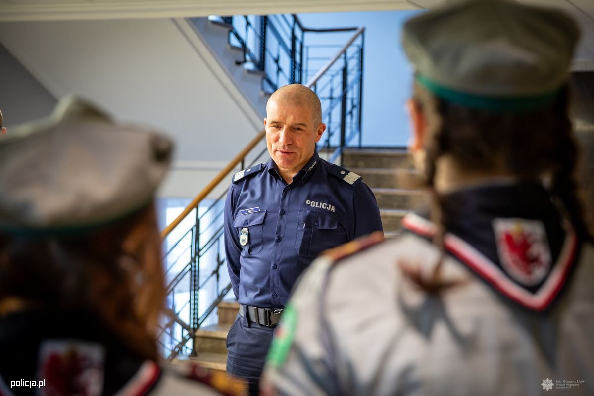 Przedstawiciele Związku Harcerstwa Polskiego - Maciej Szczęsny, Anna Pietrzak, Nikola Pawlak oraz Oliwia Polanowska - przekazali dzisiaj na ręce I Zastępcy Komendanta Głównego Policji nadinsp. Romana Kustera Betlejemskie Światło Pokoju - symbol dobra, braterstwa, nadziei i pokoju. Płomień niesiony przez skautów w wielkiej sztafecie przez kraje i kontynenty obiega świat. Takim darem skauci z całej Europy, a wśród nich harcerki i harcerze ZHP, pragną podzielić się ze wszystkimi. Niosąc lampiony ze Światłem do szkół, urzędów, domów, szpitali i parafii krzewią największe uniwersalne wartości braterstwa i pokoju. W tym roku Betlejemskiemu Światłu Pokoju towarzyszy hasło: "Pielęgnuj dobro w sobie".