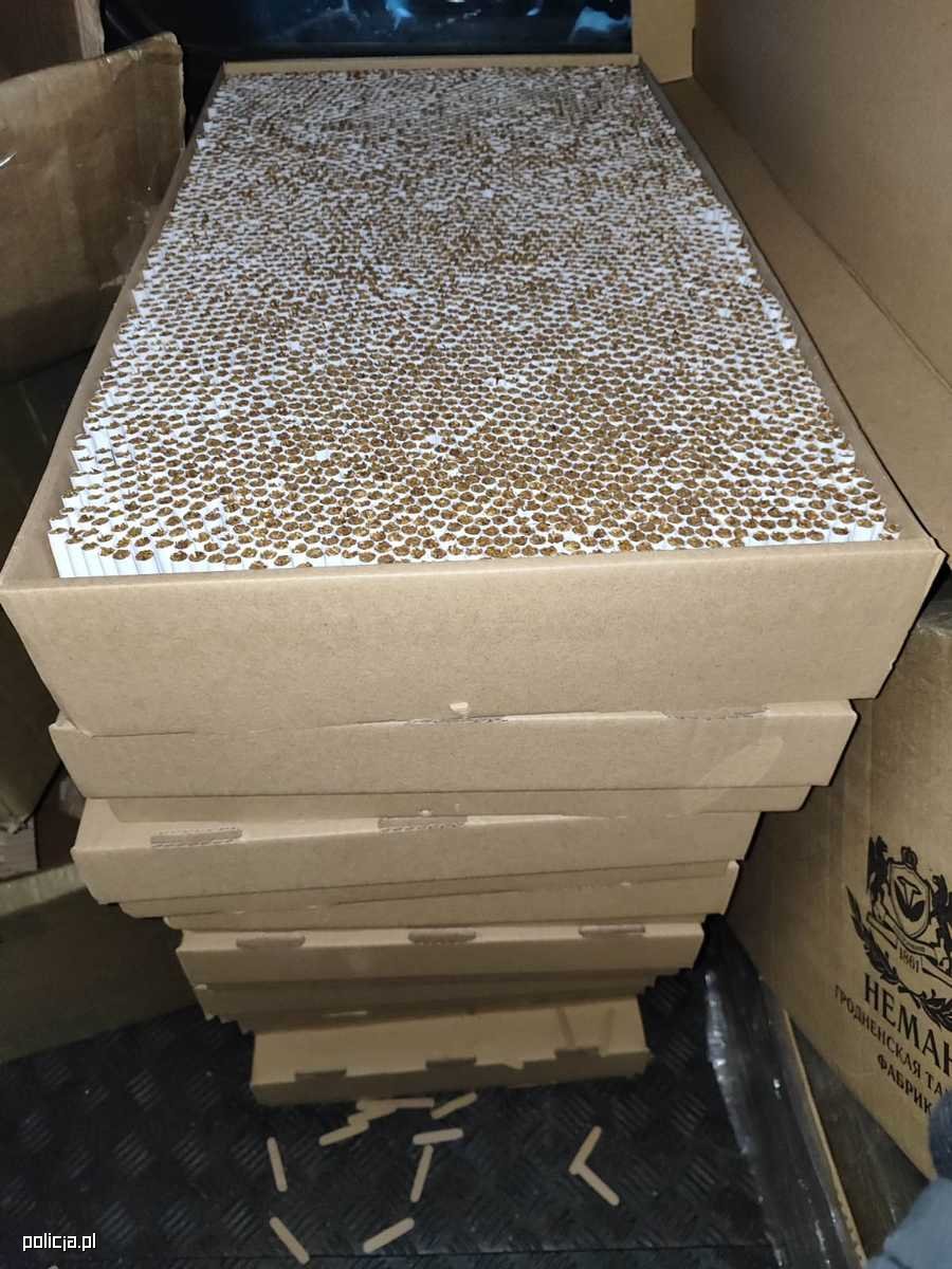 Łącznie policjanci zabezpieczyli blisko 11 900 paczek papierosów, 1,5 kg tytoniu oraz 192 litry alkoholu. Badania cieczy przeprowadzone przy użyciu spektrometru wykazały, że zawierała ona etanol. Wartość uszczuplonych należności publicznoprawnych na szkodę Skarbu Państwa spowodowanych działalnością tego mężczyzny oszacowano na ponad 400 tysięcy złotych.