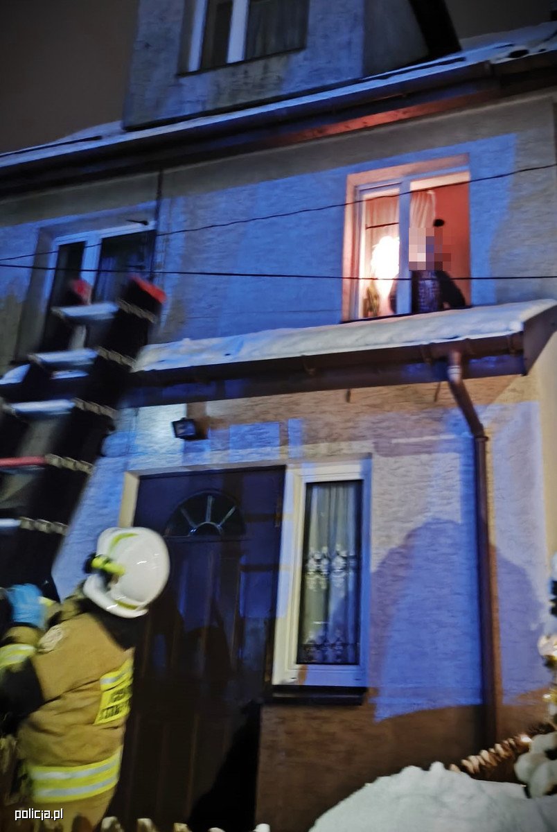 Po chwili na miejsce dotarli również strażacy, którzy rozstawili drabinę. Policjanci natychmiast weszli na nią, a następnie jeden z nich, asekurowany przez drugiego, wszedł na dach. Trzymając się rynny, dotarł do okna i nawiązał rozmowę z 80-latkiem.