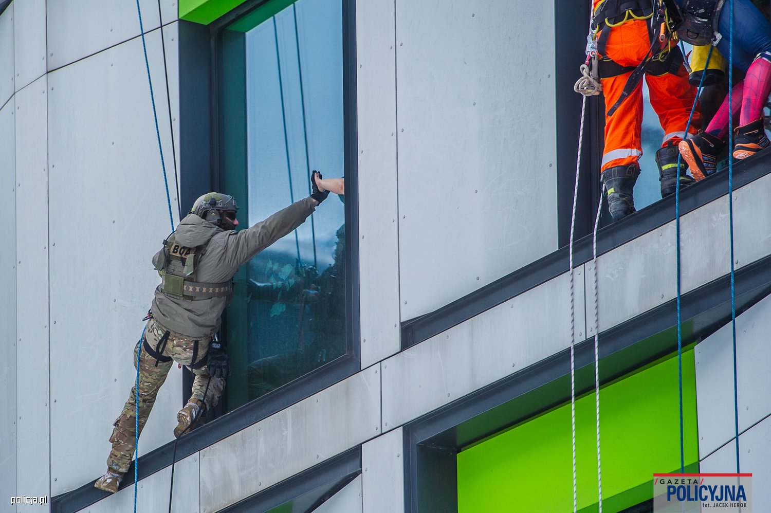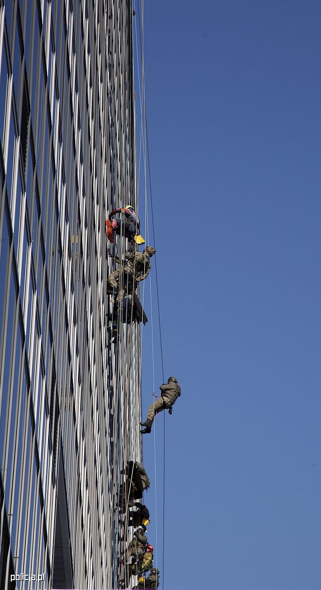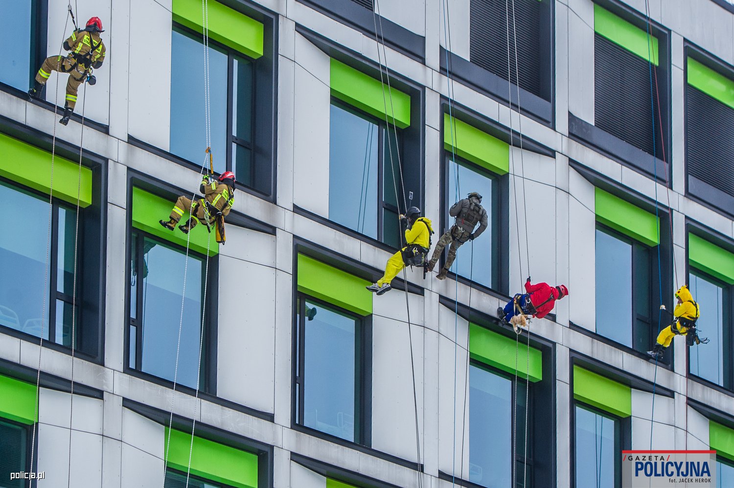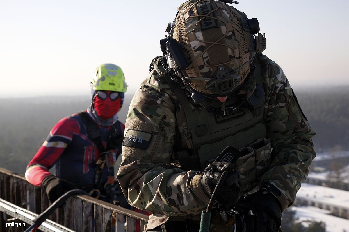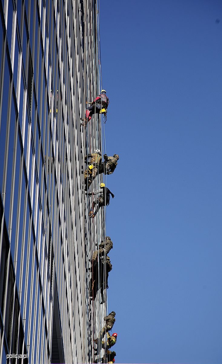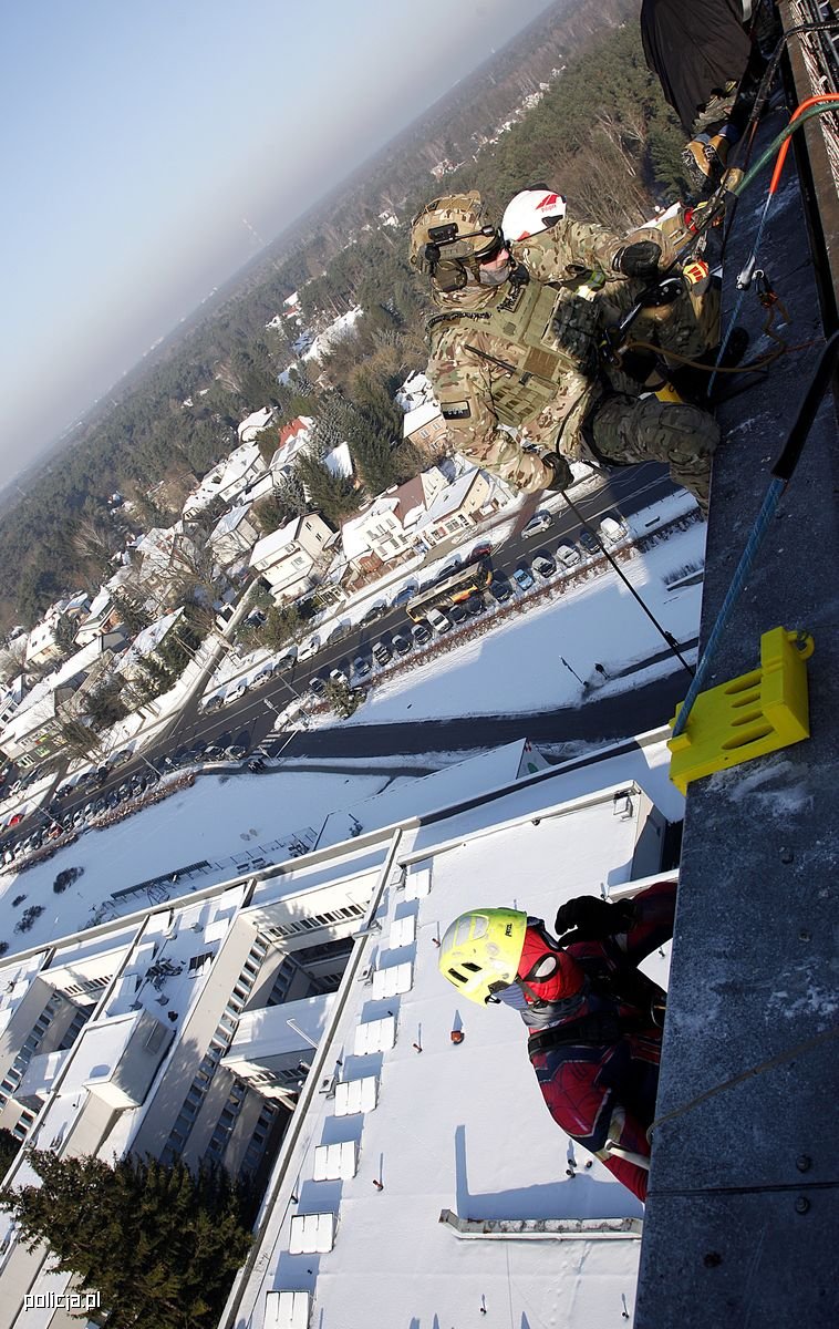 W tej niezwykłej akcji policyjnym kontrterrorystom towarzyszyli również policjanci ruchu drogowego z CSP, alpiniści z: High Five, Ochotniczej Straży Pożarnej w Kobyłce, Ząbkach i Radzyminie.
