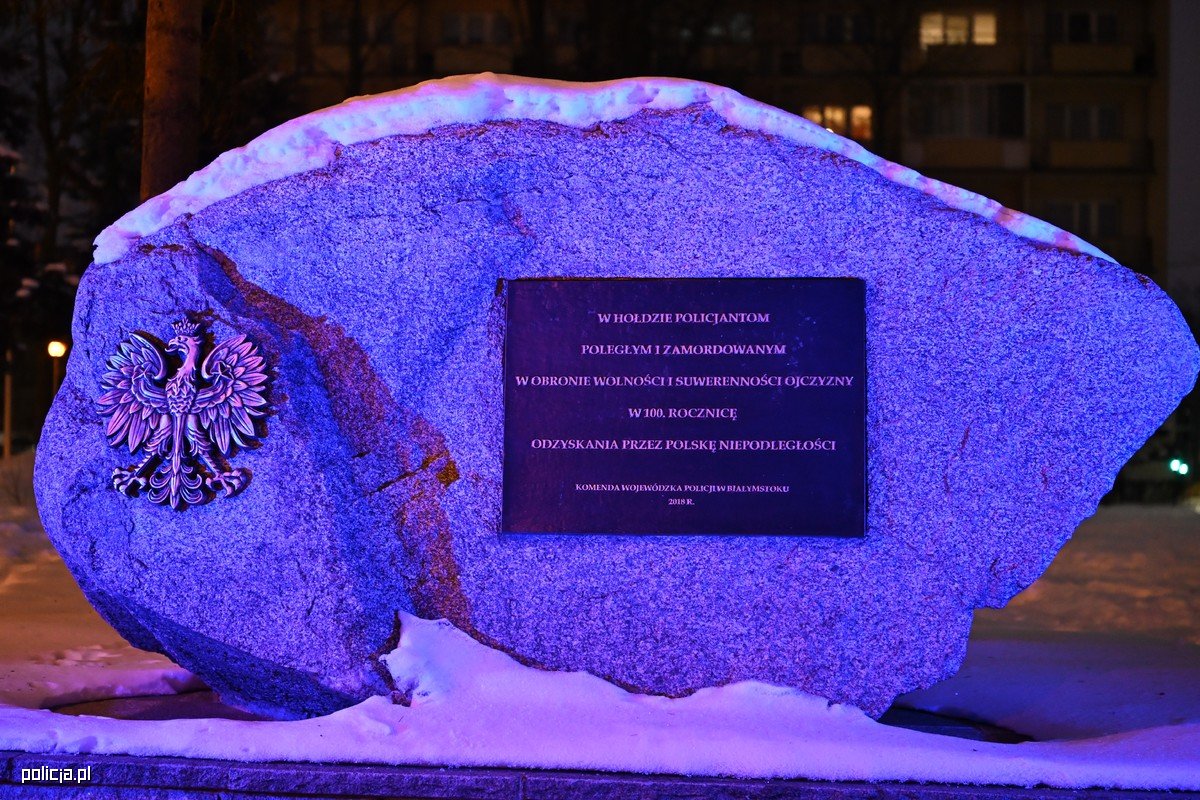 Podlascy policjanci włączyli się w międzynarodową kampanię Interpolu „Pamiętamy o poległych funkcjonariuszach”. Od początku inicjatywy pomnik przed budynkiem Komendy Wojewódzkiej Policji w Białymstoku, upamiętniający poległych funkcjonariuszy, został podświetlony na niebiesko. Ten wyjątkowy gest jest symbolem pamięci oraz wdzięczności za Ich oddaną i ofiarną służbę. Pamięć o Tych, którzy wypełnili do końca rotę policyjnego ślubowania, nigdy nie zgaśnie.