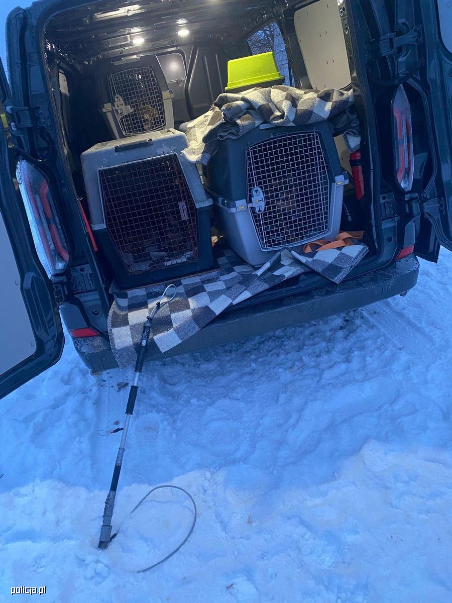 Zambrowscy policjanci wspólnie z powiatowymi lekarzami weterynarii oraz pracownikiem gminy Zambrów skontrolowali warunki bytowe kilkunastu psów przebywających na terenie prywatnej posesji w gminie Zambrów. Będąc na miejscu zauważyli zewnętrzne kojce, w których przebywały 4 psy bez dostępu do świeżej wody. Nie były one osłonięte od wiatru, a znajdujące się w nich budy były prowizoryczne i nieocieplone. Kolejne czworonogi przebywały w budynku gospodarczym. Wewnątrz panował skrajny bałagan. Znajdowały się porozrzucane śmieci oraz liczne odchody zwierzęce, które najprawdopodobniej zalegały tam od dłuższego czasu. Woda w miskach była zamarznięta. Zwierzęta przebywały w warunkach rażącego zaniedbania. Powiatowy Lekarz Weterynarii stwierdził, że psy nie mogą tam przebywać i podjął decyzję o odebraniu 11 czworonogów, które od razu zostały przewiezione do schroniska dla zwierząt.