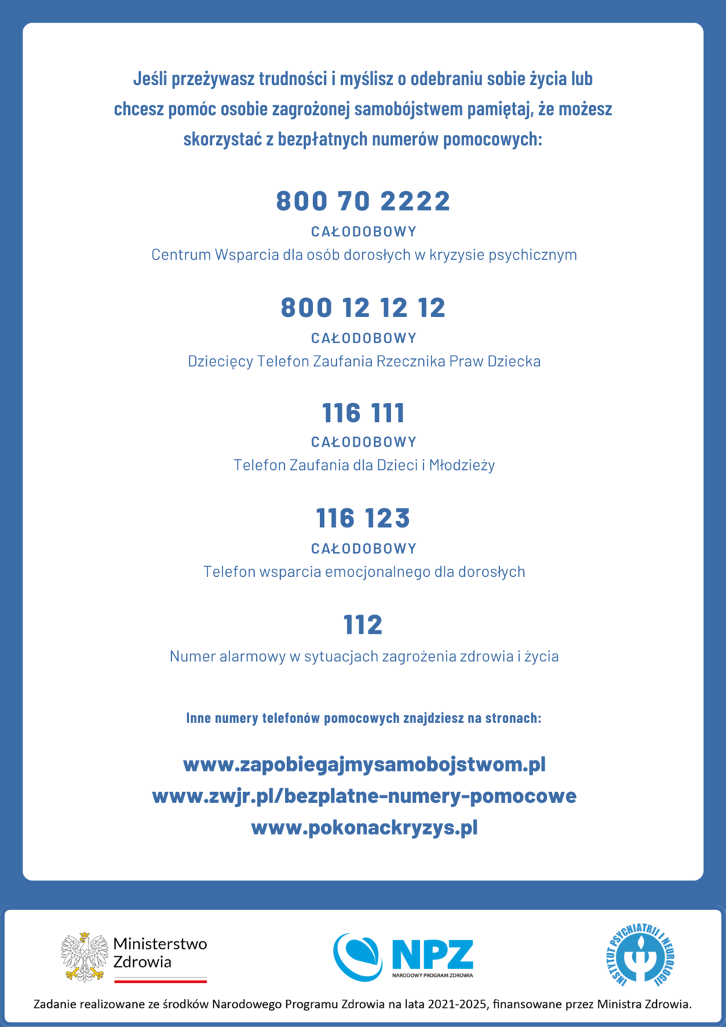 Policja apeluje do mieszkańców o czujność i reagowanie na wszelkie niepokojące treści pojawiające się w Internecie. Szczególną uwagę, należy zwrócić na treści świadczące o kryzysie emocjonalnym lub zagrożeniu życia i zdrowia innych osób. Każde takie zgłoszenie ma ogromne znaczenie i może przyczynić się do udzielenia pomocy na czas.