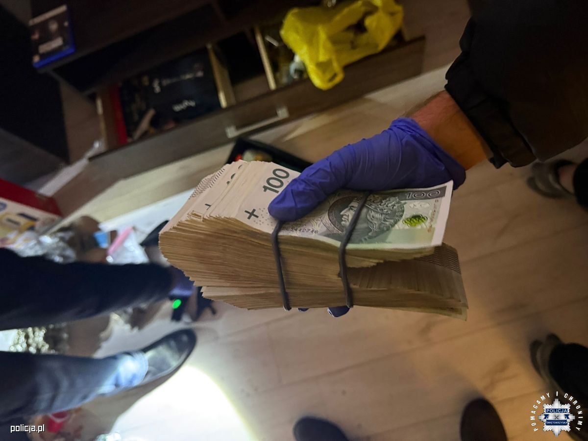 unkcjonariusze podczas przeszukania znaleźli i zabezpieczyli 50 gramów środka odurzającego 3-CMC oraz dwie porcje marihuany. Mężczyzna trafił do policyjnej celi. W wyniku czynności wykrywaczach policjanci ustalili, że narkotyki może posiadać także jego znajomy, 26-letni mieszkaniec powiatu pińczowskiego. Śledczy pojechali do jego miejsca zamieszkania. Tam zabezpieczyli środek odurzający - substancję 3-CMC o wadze ponad 1,1 kilograma, susz konopi innych niż włókniste o wadze ponad 700 gramów oraz 1 gram amfetaminy. Funkcjonariusze ujawnili także pieniądze w wysokości 102 tys. złotych. Także ten mężczyzna został zatrzymany.