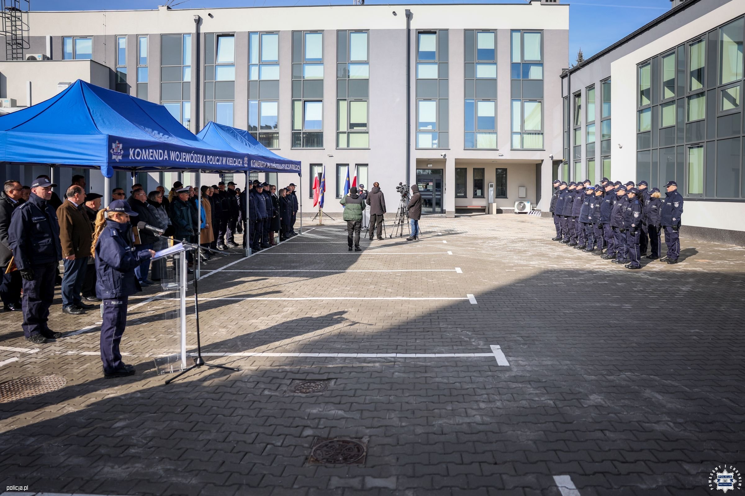Dzisiejszy apel związany był z oficjalnym oddaniem do użytku wyremontowanej i rozbudowanej Komendy Powiatowej Policji w Opatowie - miejsca, które jest nie tylko siedzibą instytucji, ale przede wszystkim przestrzenią codziennej służby na rzecz bezpieczeństwa mieszkańców całego powiatu. Zadanie inwestycyjne obejmowało da etapy. Pierwszy, realizowany był w 2019 roku i polegał na opracowaniu dokumentacji projektowo-kosztorysowej. Drugi etap realizowany był w latach 2022-2025 i obejmował wykonanie robót budowlanych oraz wyposażenie budynku. W tym czasie przebudowano istniejący obiekt, a także wybudowano nowe dwupiętrowe skrzydło z częścią biurową, garażami na cztery pojazdy służbowe ze stanowiskiem do obsługi pojazdów i zapleczem związanym z utrzymaniem psów służbowych. Warto zaznaczyć, że koncepcja przebudowy budynku powstała już w 2015 roku, w tamtym czasie były też przeprowadzone prace kartograficzno - geodezyjne.