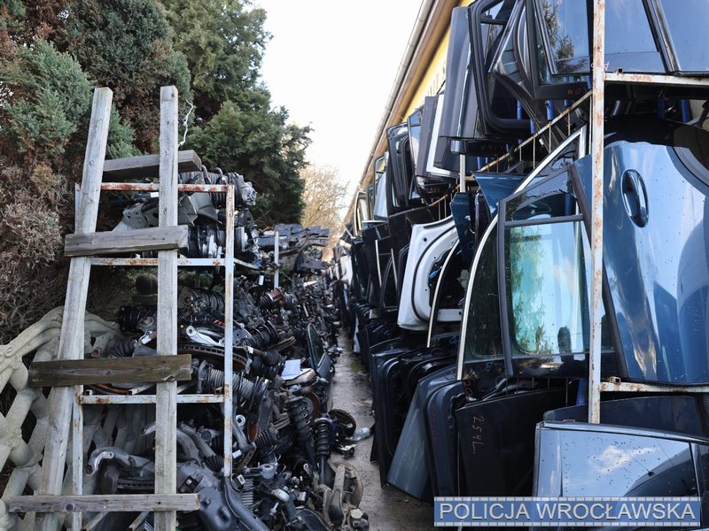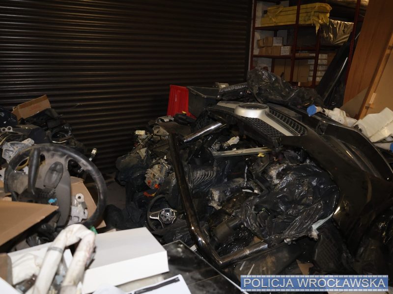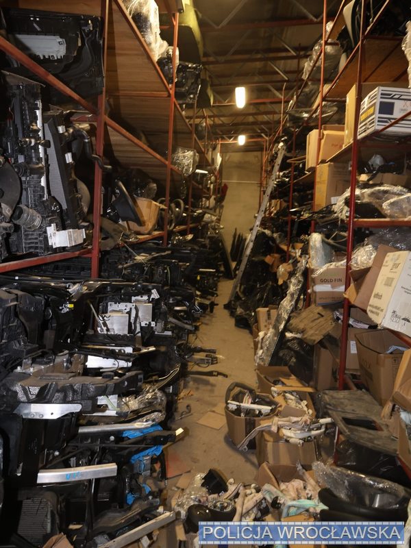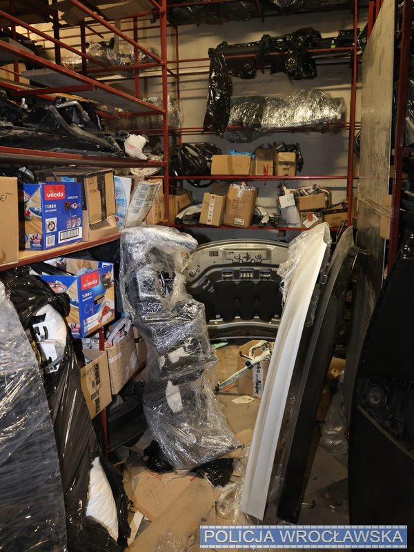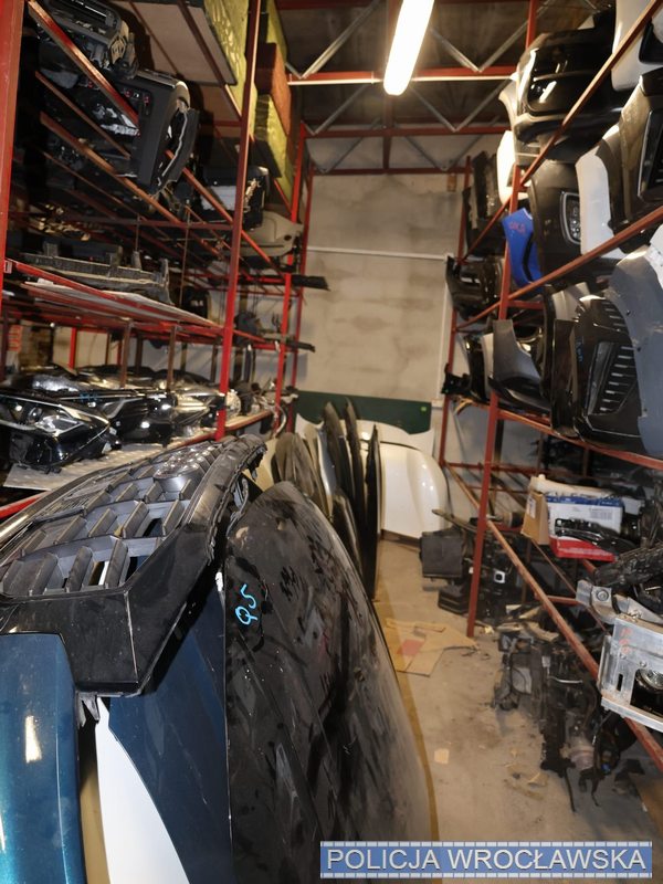 Podczas działań policjanci pionów kryminalnych zajmujący się przestępczością samochodową ujawnili tzw. dziuplę, w której przechowywane były części pochodzące z pojazdów mogących być przedmiotem przestępstwa. Na miejscu zabezpieczono elementy karoserii oraz wyposażenia samochodów, w tym m.in. zderzaki, kokpity oraz inne podzespoły. Wstępnie potwierdzono, że części pochodzą z co najmniej 13 pojazdów skradzionych głównie poza granicami naszego kraju.