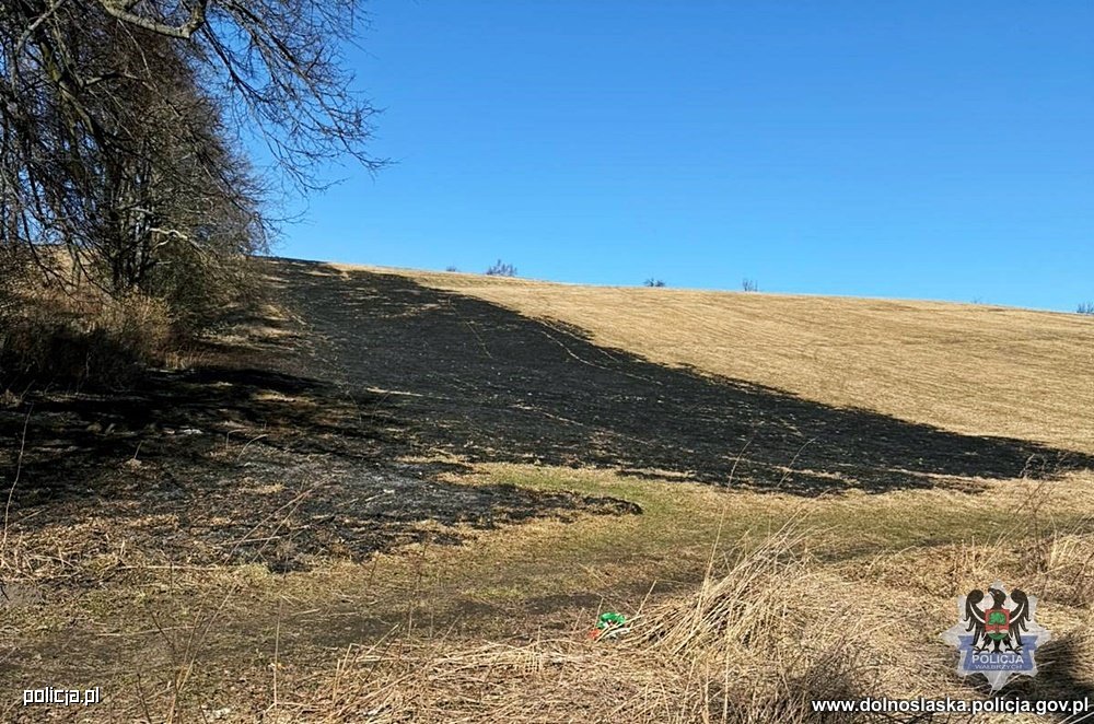 Czujni także po służbie. Policyjne małżeństwo z Wałbrzycha uratowało mężczyznę z płonącej łąki