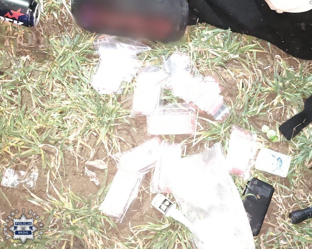 Już po chwili na miejscu pojawili się kryminalni. Funkcjonariusze grupy dochodzeniowo-śledczej wykonali dokumentację fotograficzną i oględziny miejsca zdarzenia oraz zabezpieczyli materiały dowodowe i podejrzane substancje znajdujące się w woreczkach. Śledczy zabezpieczyli prawie 1000 porcji amfetaminy, które teraz trafią do policyjnego laboratorium.