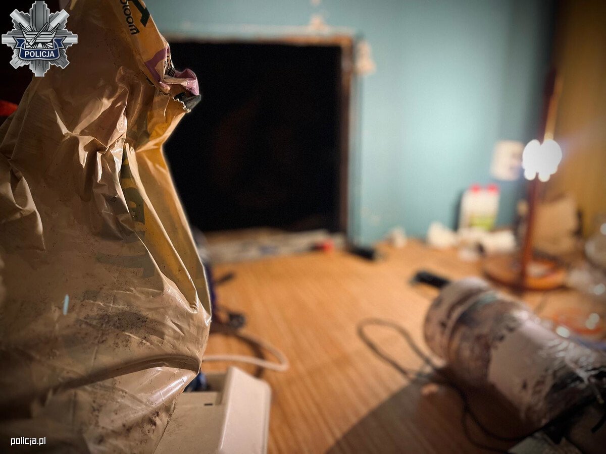 Po dotarciu pod ustalony adres, stróże prawa zauważyli podejrzewanego mężczyznę, który wychodził z wytypowanego lokalu. Natychmiast został wylegitymowany. 46 - latek podczas rozmowy przyznał, że posiada w mieszkaniu narkotyki. Przeszukanie potwierdziło, że miał schowane w słoiku substancje zabronione prawem. Intensywny zapach marihuany unoszący się w mieszkaniu, nie dawał spokoju policjantom. Ich przypuszczenia szybko się potwierdziły, gdyż w garderobie jedna ze ścian miała dziurę, która prowadziła do … nielegalnej plantacji. Pomieszczenie, w którym się znajdowała, wyposażone było w specjalistyczny sprzęt niezbędny do uprawy konopi, m.in. odpowiednie oświetlenie, wentylację, ogrzewanie oraz nawodnienie.