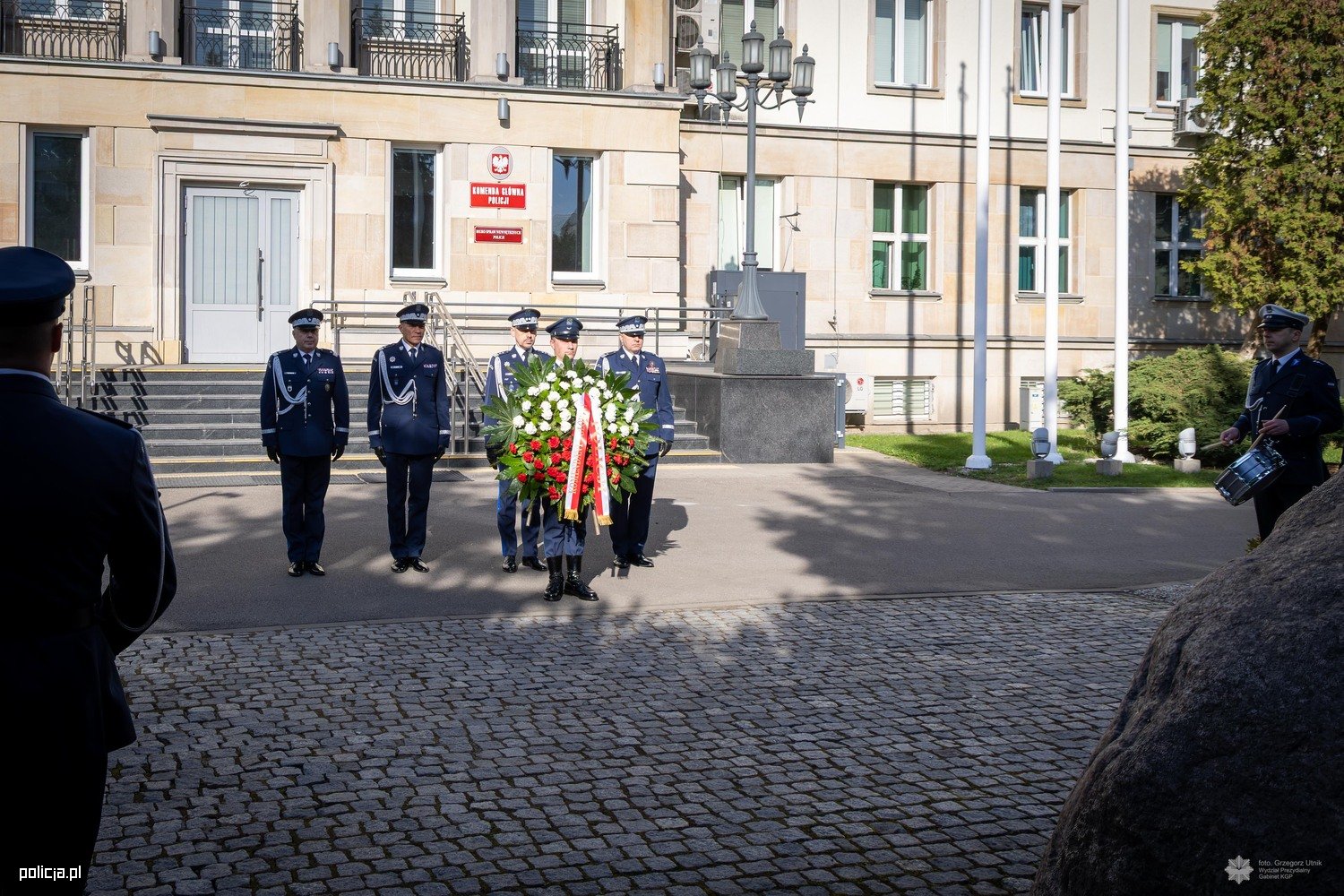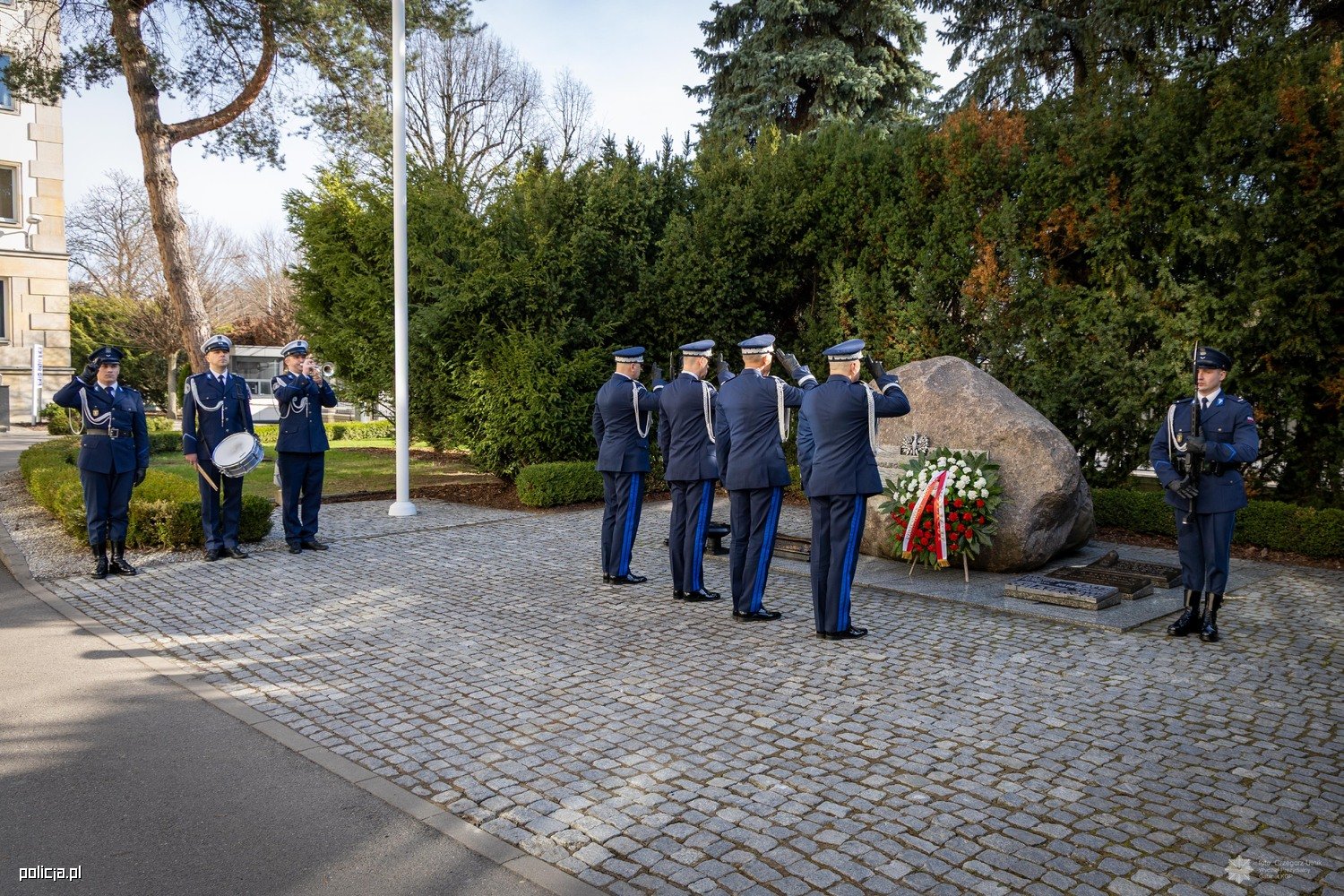 Dziś, 3 kwietnia, Komendant Główny Policji gen. insp. Marek Boroń wspólnie z zastępcami: nadinsp. Romanem Kusterem, nadinsp. dr. Rafałem Kochańczykiem oraz nadinsp. dr. Tomaszem Michułką złożyli kwiaty przed obeliskiem „Poległym Policjantom - Rzeczpospolita Polska” oraz przed Tablicą Pamięci w siedzibie Komendy Głównej Policji.