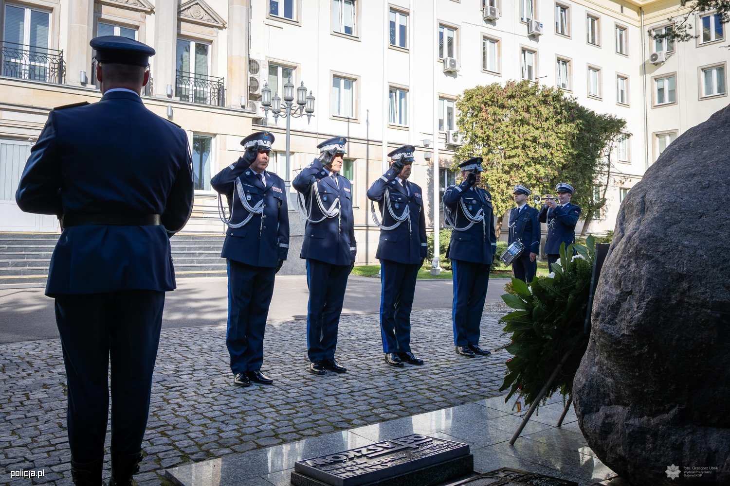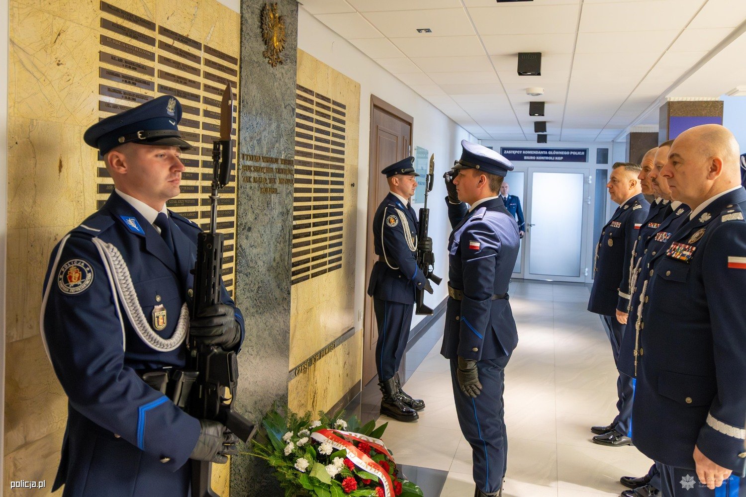 Komendant Główny Policji gen. insp. Marek Boroń wraz z zastępcami, w imieniu kierownictwa polskiej Policji, wszystkich policjantów i pracowników Policji złożyli kwiaty przed obeliskiem „Poległym Policjantom - Rzeczpospolita Polska” oraz Tablicą Pamięci w siedzibie KGP. To wyraz hołdu pamięci wszystkim poległym policjantom, złożony z okazji zbliżających się Świąt Wielkiej Nocy.
