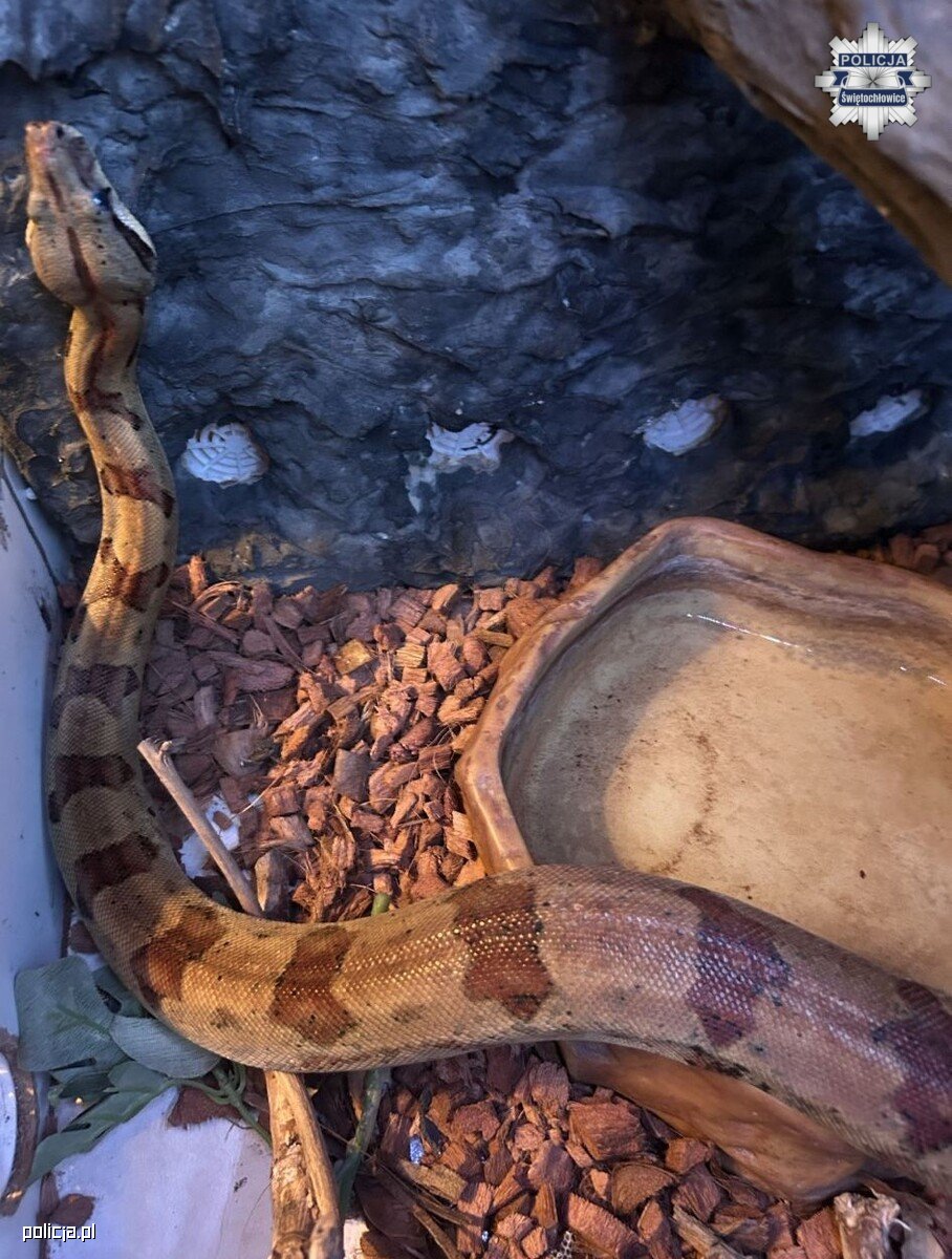 Świętochłowiccy policjanci z wydziału do walki z przestępczością gospodarczą wpadli na trop osoby sprzedającej w Internecie egzotyczne zwierzę. Podczas przeszukania w mieszkaniu 60-letniego mężczyzny znaleźli węża, który znajduje się na liście gatunków zagrożonych. Zgodnie z ustawą o ochronie przyrody, handel bez wymaganych zezwoleń okazami objętymi ochroną, zagrożony jest karą do 5 lat więzienia.