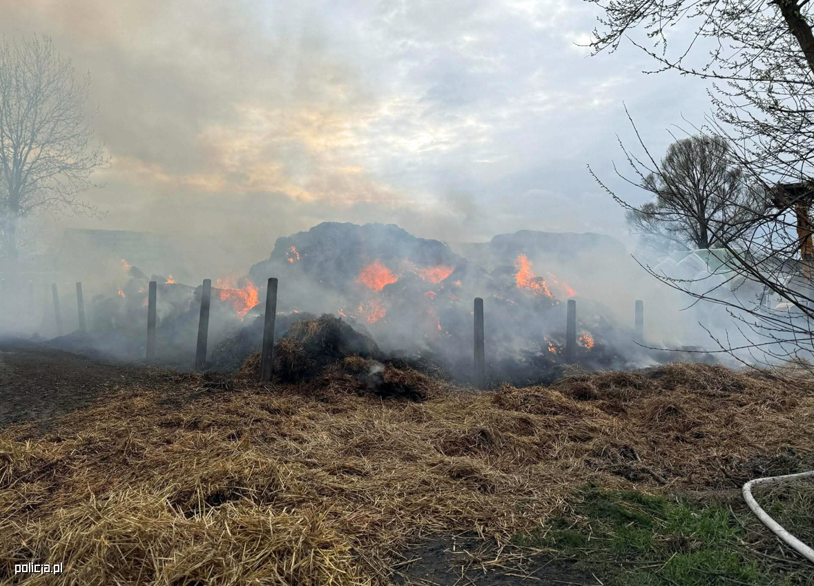 W minionym tygodniu, 08.04.2026 r., w Krzyżanówce, w gminie Sienno, doszło do podpalenia ok. 200 sztuk balotów słomy. Dzięki szybkiej reakcji policjantów ustalono osoby podejrzane o to przestępstwo. Do miejsca ukrycia sprawców doprowadził funkcjonariuszy pies służbowy z Komendy Miejskiej w Radomiu.