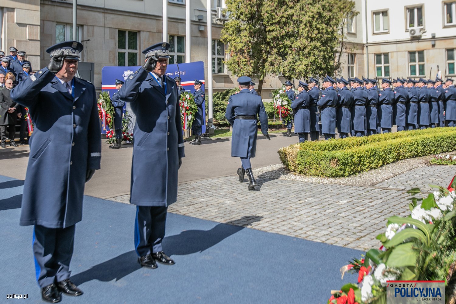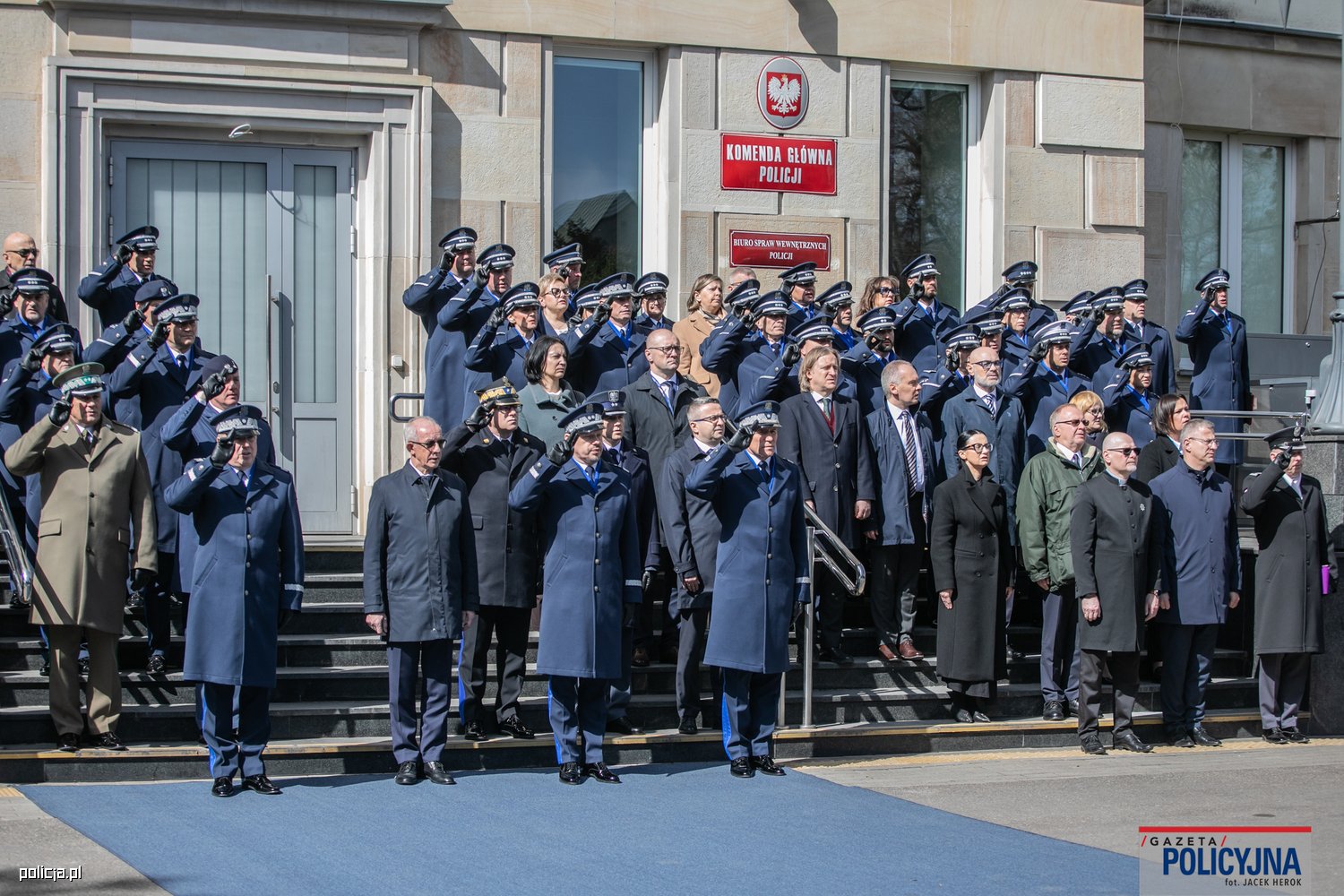 Dziś na dziedzińcu przed budynkiem Komendy Głównej Policji odbył się apel z okazji Dnia Pamięci Ofiar Zbrodni Katyńskiej. Uroczystość poprzedziło złożenie wieńców przed Tablicą Pamięci w budynku Komendy Głównej Policji, a następnie – po zmianie posterunku honorowego – przy obelisku „Poległym Policjantom – Rzeczpospolita Polska” oddano hołd Polakom pomordowanym przez NKWD wiosną 1940 roku.