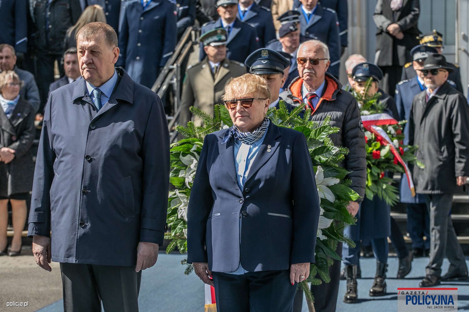 Głos zabrał również podsekretarz stanu Wiesław Leśniakiewicz, który podziękował Komendantowi Głównemu Policji za uhonorowanie tego tragicznego wydarzenia przed obeliskiem, pod którym znajdują się prochy pomordowanych, oraz ziemia z Miednoje.