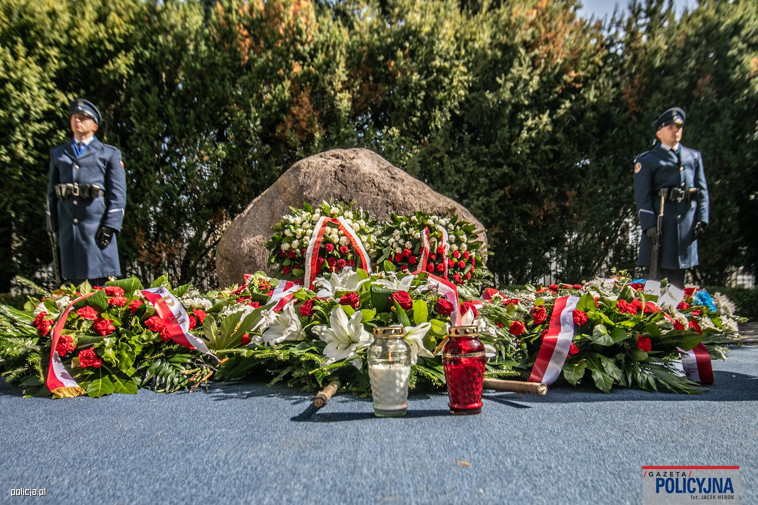 Nie jest nam dane być tam, gdzie są groby i prochy tych, którzy oddali życie. To miejsce jest symboliczne dla wszystkich policjantów i dziś stajemy przed tą mogiłą, aby oddać pokłon i szacunek wszystkim poległym. Pamiętajmy o tej historii – zaapelował Minister.