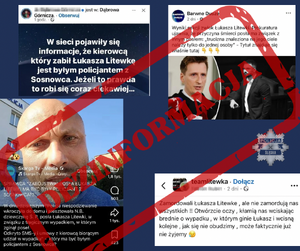 W związku z tragicznym wypadkiem drogowym, w którym zginął poseł Łukasz Litewka, w przestrzeni internetowej rozpowszechniane są liczne coraz bardziej „sensacyjne” informacje, spekulacje oraz treści wprowadzające w błąd. Jedną z ostatnich jest informacja o rzekomym zatrzymaniu partnerki posła i jeszcze bardziej bulwersująca, że zatrzymany kierowca był funkcjonariuszem Policji.
