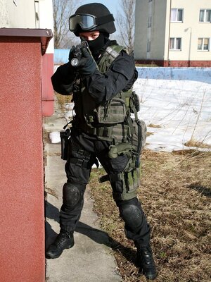 Wydział Realizacyjny to specyficzny wydział, pracujący tutaj policjanci zatrzymują najgroźniejszych przestępców, biorą udział w niebezpieczniejszych akcjach i w każdej chwili muszą pozostawać w pełnej gotowości, by zjawiać się na wezwanie. Szkolą się nieustannie, a w ich treningi również wpisane jest ryzyko – szkolenia z bronią i ostrą amunicją, w warunkach zbliżonych do prawdziwych działań, gdzie najdrobniejszy błąd, chwila dekoncentracji może skończyć się tragicznie. Wśród nich ona – postawna, młoda, pełna zapału i werwy kobieta – jedyna w Polsce w takim wydziale – Marta. W ważącym ponad 20 kg „rynsztunku”, z zakrytą twarzą, fizycznie niby nie wyróżnia się wśród kolegów, jedynie po łagodnych i pięknych oczach wyzierających spod kominiarki można poznać, że to kobieta. W niczym też nie odbiega od nich w codziennych ćwiczeniach, więcej nawet, jak mówią jej przełożeni, niejeden mężczyzna jej nie dorówna. Kiedy zjawia się w pracy nie chce się wyróżniać poprzez ubiór i nie podkreśla swoich kobiecych walorów, chociaż po służbie funkcjonuje jak każda z nas i też jak to kobieta lubi się ładnie ubrać. – Trzeba znaleźć to wyważenie pomiędzy pracą a domem – stwierdza.