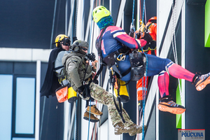 W tej niezwykłej akcji policyjnym kontrterrorystom towarzyszyli również policjanci ruchu drogowego z CSP, alpiniści z: High Five, Ochotniczej Straży Pożarnej w Kobyłce, Ząbkach i Radzyminie.