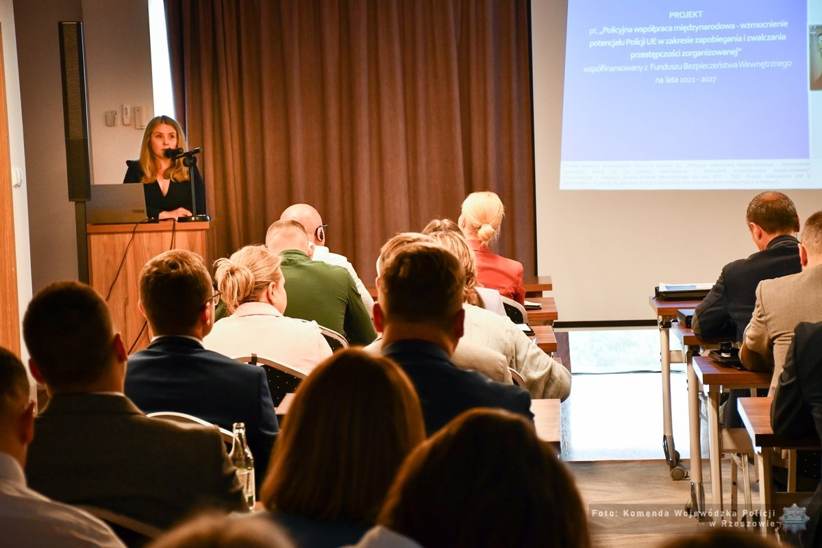 Główne założenia i cel podejmowanych działań w związku z realizowanym projektem „Policyjna współpraca międzynarodowa - wzmocnienie potencjału Policji UE w zakresie zapobiegania i zwalczania przestępczości międzynarodowej”, omówiła Agata Michońska główny specjalista Sekcji Zamówień Publicznych i Funduszy Pomocowych z Komendy Wojewódzkiej Policji w Rzeszowie.