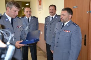 Odkryte 10 miesięcy temu polichromie ścienne doczekały się renowacji. Dzięki ministerialnej dotacji datowane na lata 20-te XX wieku malowidła odzyskały dawną świetność. Dzisiaj Zastępca Komendanta Wojewódzkiego Policji w Krakowie insp. Jacek Fabisiak wraz z Naczelnikiem Wydziału Inwestycji i Remontów KWP w Krakowie mł. insp. Mirosławem Widełką, odwiedził policjantów tarnowskiego komisariatu, by podziwiać końcowy efekt prac konserwatorskich. Komendant wraz z konserwatorkami dzieł sztuki Agnieszką Dziurawiec i Małgorzatą Zelek, przecinając wstęgę, dokonali również symbolicznego odsłonięcia blisko stu letnich malowideł.