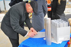 Wykonawca prac budowlanych rozpoczął je 15 września 2014 roku, ale to dziś miała miejsce uroczystość wmurowania aktu erekcyjnego. Metalowa tuba, w której spoczął akt erekcyjny, dzisiejsze wydania lokalnych i krajowych gazet a także będące w obiegu monety, został zamurowany w północnej ścianie powstającego gmachu.