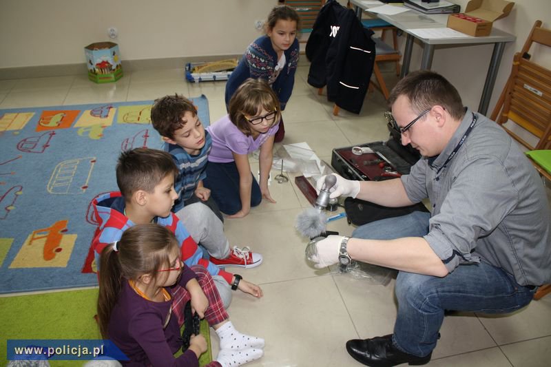 Policjanci z Komendy Powiatowej Policji w Oleśnie odwiedzili dzieci z Praszki. Podczas półkolonii przypomnieli najmłodszym podstawowe zasady bezpiecznego spędzania wolnego czasu. Tym razem gościem specjalnym był policyjny technik. Sierż. sztab. Arkadiusz Namyślak opowiedział o swojej pracy oraz pokazał wyposażenie specjalnej walizki wykorzystywanej podczas zabezpieczania śladów na miejscu zdarzenia. Dzieci z zapartym tchem obserwowały jak pracuje ekspert.