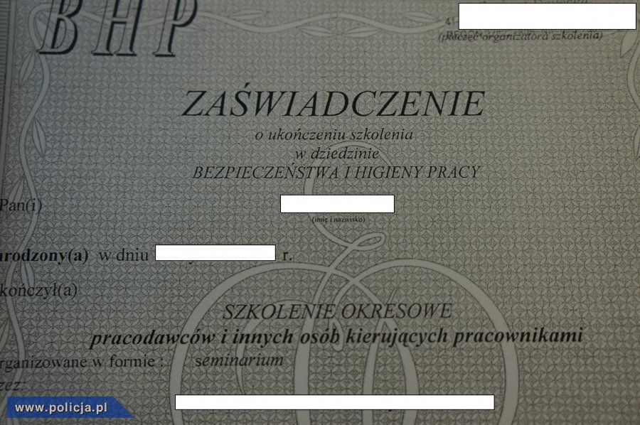 Z zebranych przez policjantów dowodów wynika, że właścicielka bytomskiej firmy zajmującej się prowadzeniem szkoleń BHP, wraz z dwoma swoimi pracownikami, podrabiała i poświadczała nieprawdę w dokumentacji dotyczącej tego typu szkoleń. Firma ta zobowiązana była do prowadzenia szkoleń BHP na terenie całego Śląska. Proceder trwał w od 2010 do 2013 roku.