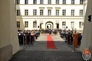 Później uczestnicy uroczystości oraz zaproszeni goście wysłuchali koncertu w wykonaniu Orkiestry Reprezentacyjnej Policji oraz solistki-dyrygentki chóru Komendy Stołecznej Policji, Pani Sylwii Krzywdy.
