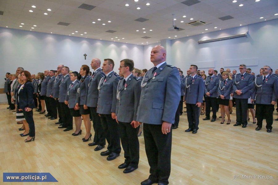Za wzorowe, wyjątkowo sumienne wykonywanie obowiązków wynikających z pracy zawodowej Medalem Za Długoletnią Służbę odznaczonych zostało dzisiaj 40 osób. W uznaniu szczególnych zasług i osiągnięć służbowych w zakresie ochrony bezpieczeństwa ludzi oraz utrzymania porządku publicznego odznaką Zasłużony Policjant wyróżnionych zostało 26 funkcjonariuszy Policji. Na wyższe stopnie służbowe mianowano dzisiaj 65 funkcjonariuszy Policji.