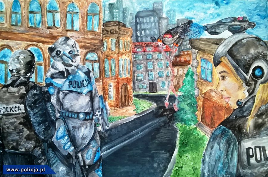 Konkurs „Policja przyszłości” zorganizowany został przez Komendę Główną Policji oraz Stowarzyszenie Producentów i Dziennikarzy Polskich z Poznania. Przedsięwzięcie adresowane było do uczniów szkół podstawowych oraz gimnazjalnych. Zadaniem uczestników było wykonanie pracy plastycznej lub literackiej obrazującej polską Policję w przyszłości. Na konkurs wpłynęło łącznie 1887 rysunków, makiet, figurek, modeli przestrzennych, opowiadań i wierszy. Uczestnicy do wykonania prac użyli zróżnicowanych materiałów od pasteli, farb, kredek aż po plastelinę i bibułę.