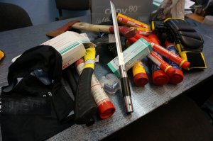 Informacja o zdarzeniu trafiła do wszystkich policyjnych patroli. Auto, którym uciekli, zostało namierzone na ulicy Kościuszki przez policjantów z drogówki. Kilka minut później mundurowi zatrzymali jadących nim trzech mężczyzn. Podejrzani w wieku 18, 22 i 33 lat trafili do policyjnego aresztu. W ich samochodzie śledczy znaleźli: kominiarki, siekiery, race, gaz obezwładniający, anaboliki oraz metalową pałkę z ukrytym w niej kilkudziesięciocentymetrowym ostrzem.